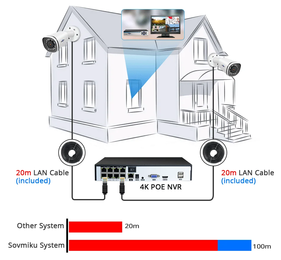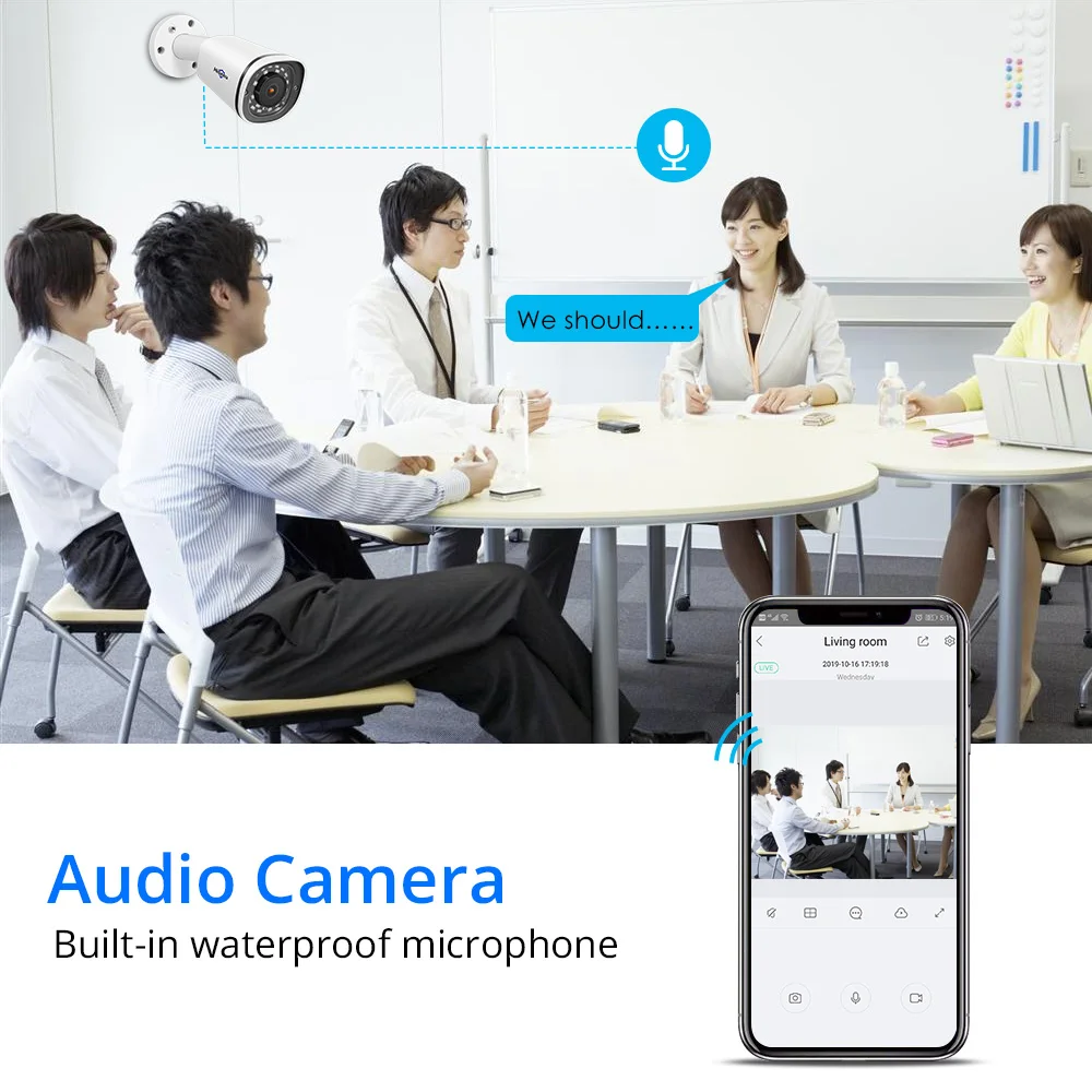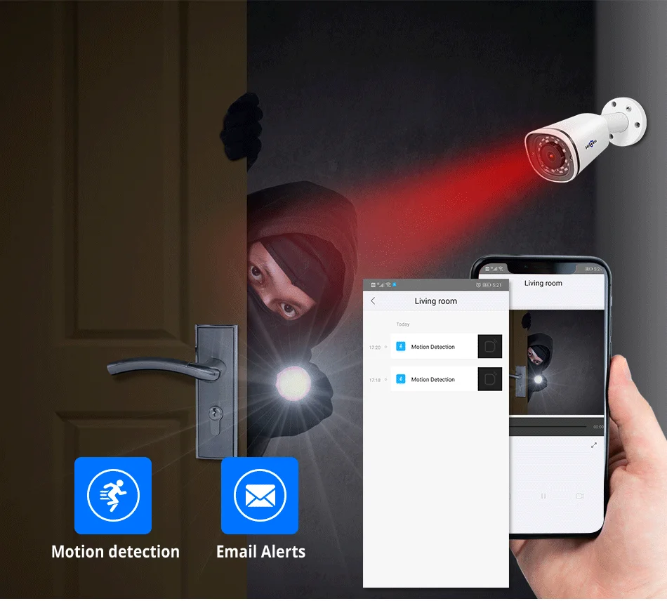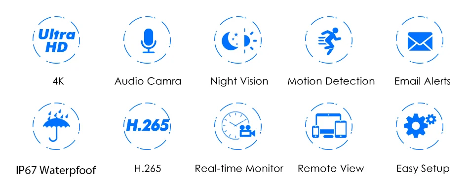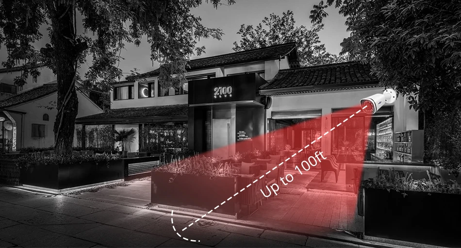 Thanks to the 24pcs powerful infrared LEDs, the 4K ip camera will capture surroundings at night for up to 100ft.