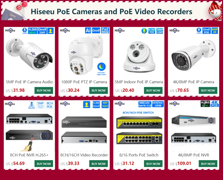 The best product you are looking for is "Hiseeu 8CH 4K POE NVR Kit H.265 CCTV Security System 8MP Outdoor Waterproof POE IP Camera Audio Record Video Surveillance Set". This product is available and ready to be purchased. Get attractive discounts every time you shop in our store (aliexpress.com). Aliexpress also provides a coupon of $ 3 for the first buyer to shop there. don't forget to bookmark our store page so you can go shopping again anytime..