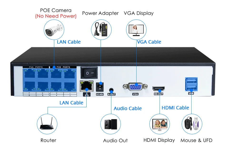 Buy Now On AliexpressGadinan 8CH/4CH 5MP 1080P 48V POE Face Detection NVR Audio Out Surveillance Security P2P Video Recorder For POE CCTV System