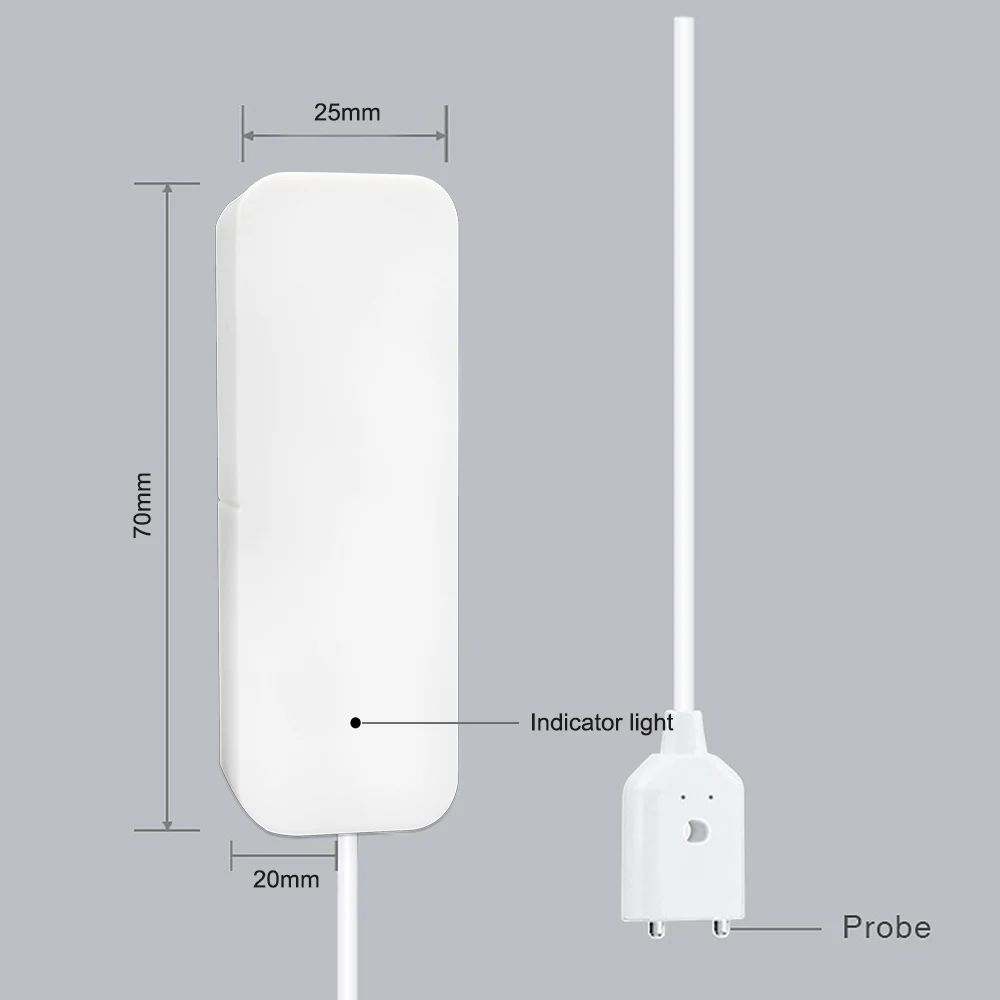 【Working Principle】When the two feet of the detector was immersed by the water, the alert notifications will be pushed to your phone, be aware of water overflowing in time, reducing flooding risk.