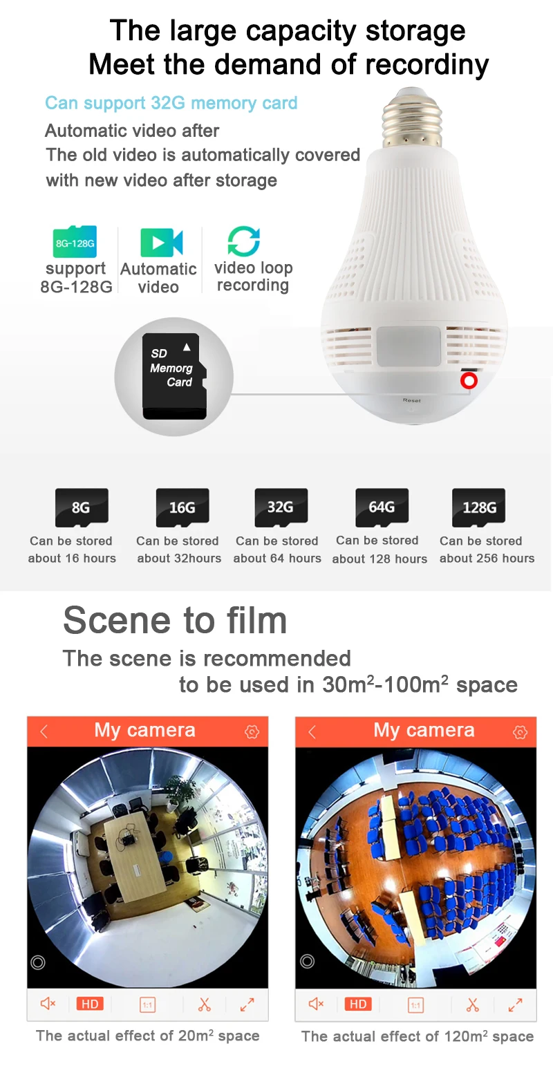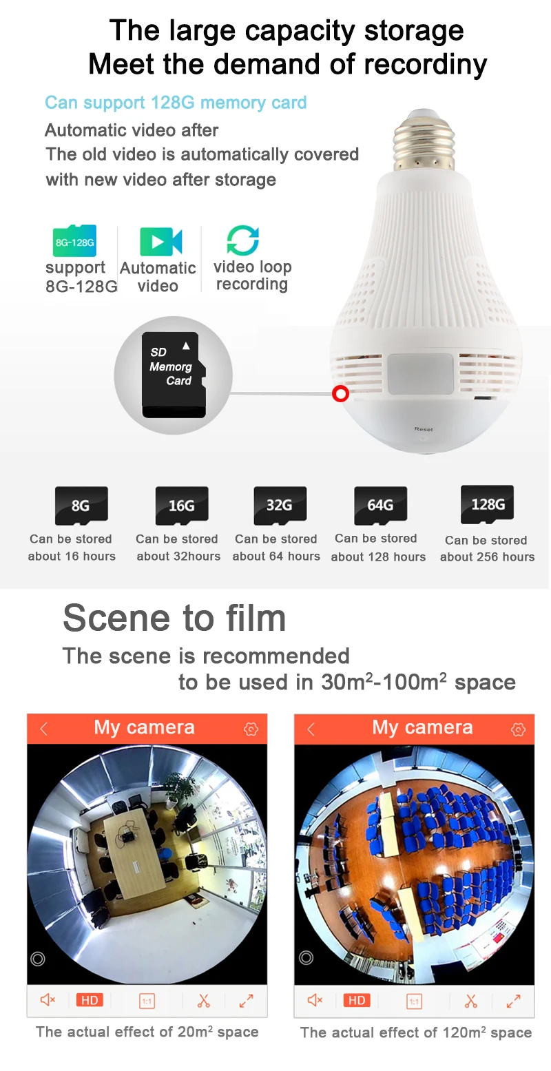The best product you are looking for is "OUERTECH 360 Degree Two-Way Audio White Light Bulb Panoramic 960P Full Color WIFI Smart Bulb Camera VR Home Security Camera". This product is available and ready to be purchased. Get attractive discounts every time you shop in our store (aliexpress.com). Aliexpress also provides a coupon of $ 3 for the first buyer to shop there. don't forget to bookmark our store page so you can go shopping again anytime..