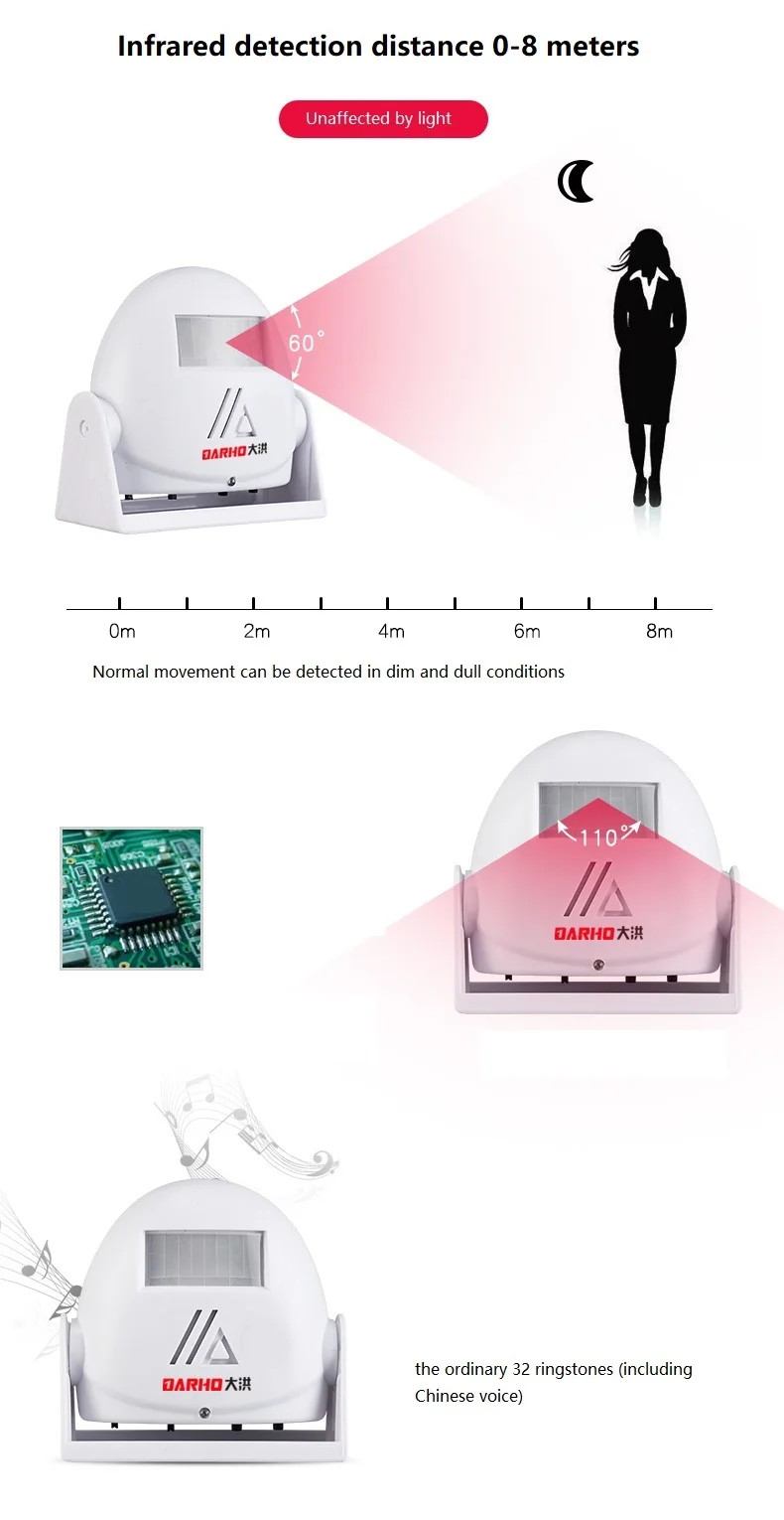 The best product you are looking for is "Darho Hello Welcome Wireless Intelligent Greeting Doorbell Infrared Motion Sensor Warning Door Bell Alarm 8 Colours". This product is available and ready to be purchased. Get attractive discounts every time you shop in our store (aliexpress.com). Aliexpress also provides a coupon of $ 3 for the first buyer to shop there. don't forget to bookmark our store page so you can go shopping again anytime..