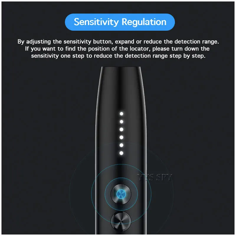 4. With 6 signal strength indicating light, can adjust the sensitivity of the device, quickly find the source of the signal.