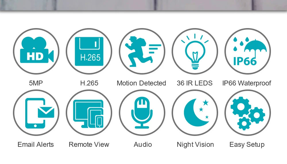 H.265 (HEVC) doubles the coding efficiency compared with its predecessor H.264. This means H.265 video saves around 50% of the bit rate at the same quality of coding.H.265 only need less bandwidth,faster loading speed,more smooth videoLower bite rate,higher image qualityExperience with 5MP Super HD System