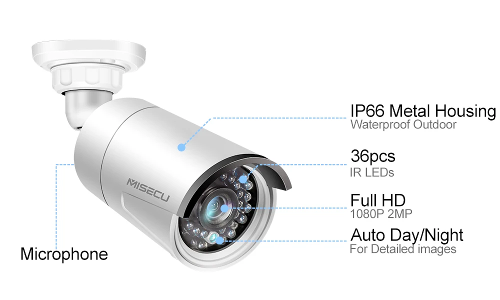 This POE (Power over Ethernet) camera work with only one network cable to both provide power supply and transmit video signals. Equipped with only one network cable to both provide power supply and transmit video signals. Not need Power adapter, So simplified the installation and reduced costs.Misecu 48V POE CCTV System