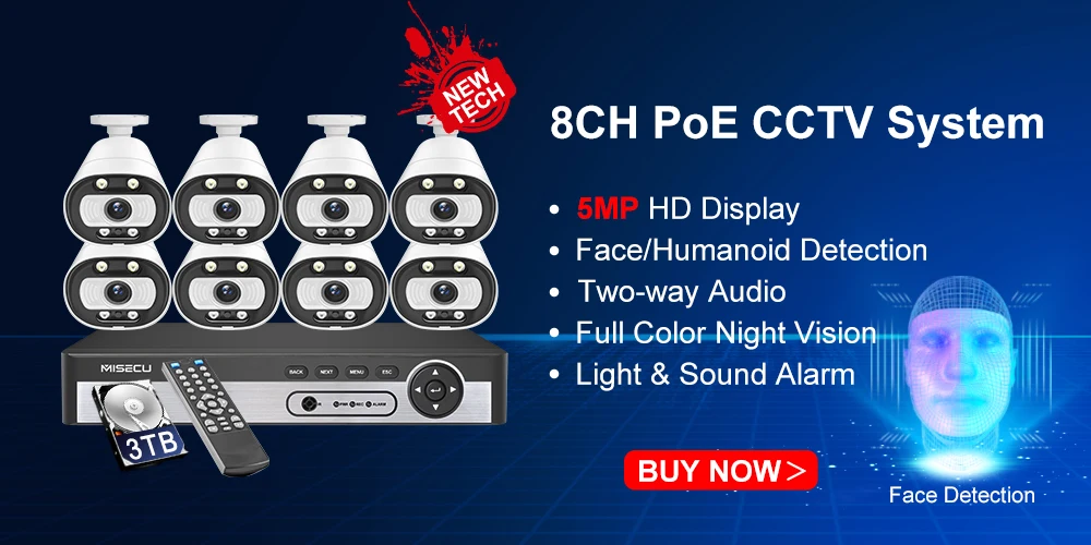 The best product you are looking for is "MISECU 8CH 5MP POE Security Camera System Face Record NVR Outdoor Waterproof IP Camera Audio Record Home Video Surveillance Kit". This product is available and ready to be purchased. Get attractive discounts every time you shop in our store (aliexpress.com). Aliexpress also provides a coupon of $ 3 for the first buyer to shop there. don't forget to bookmark our store page so you can go shopping again anytime..