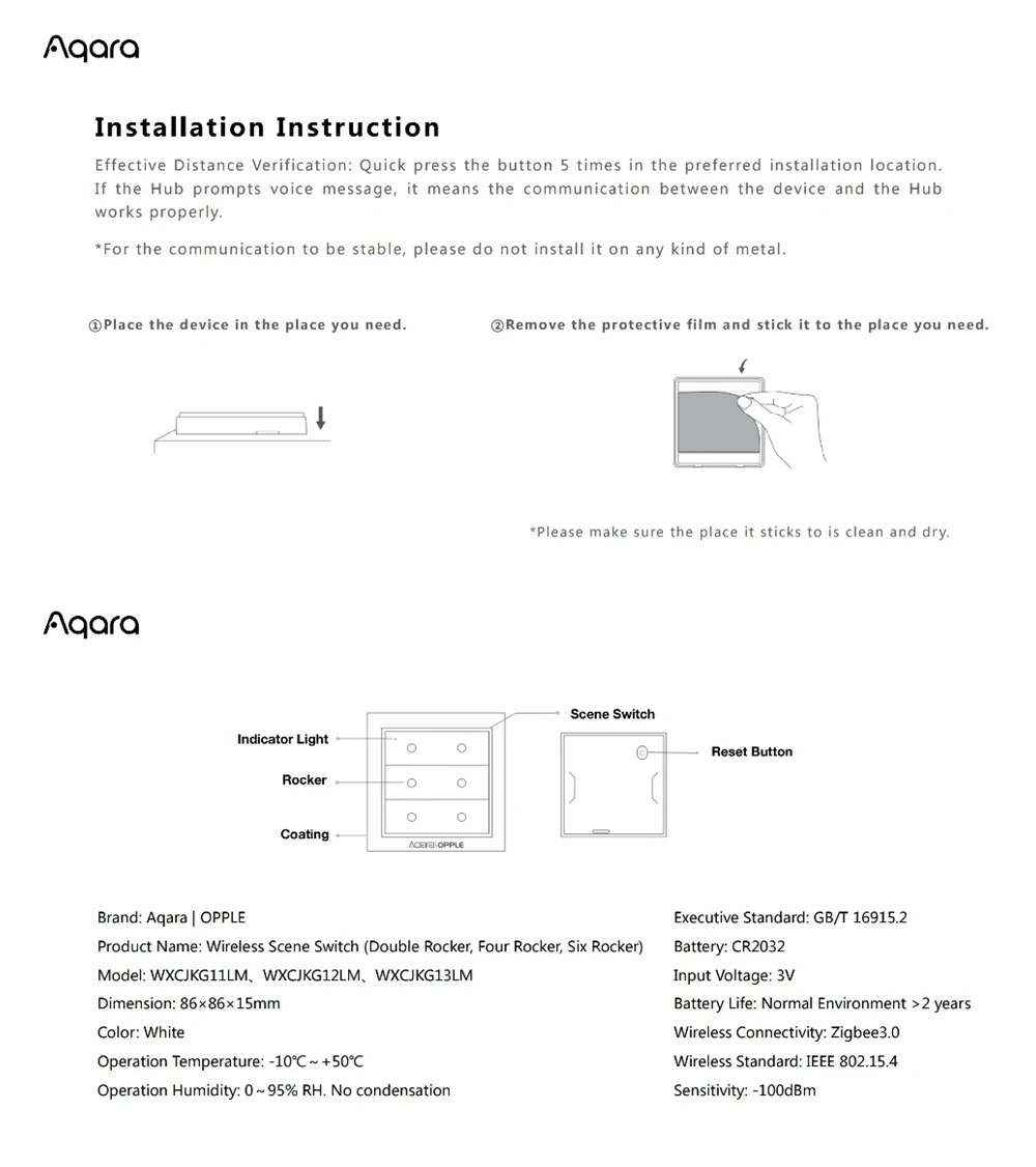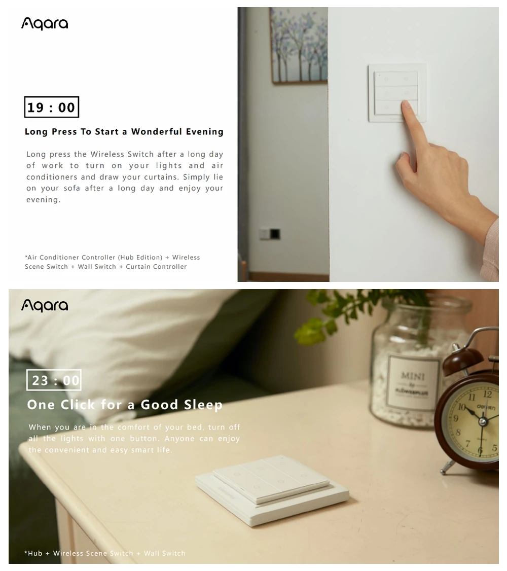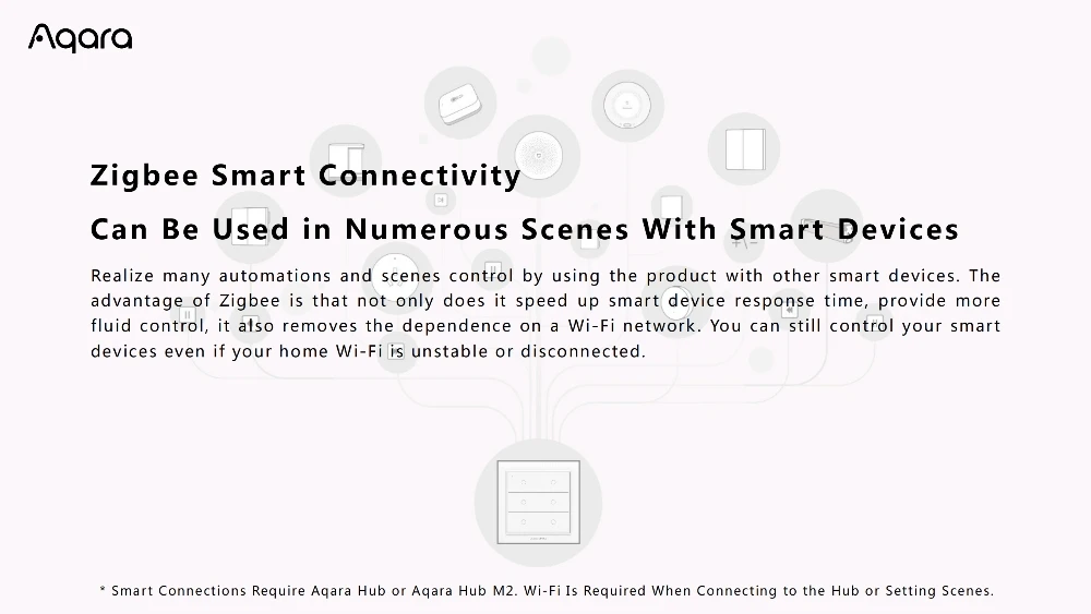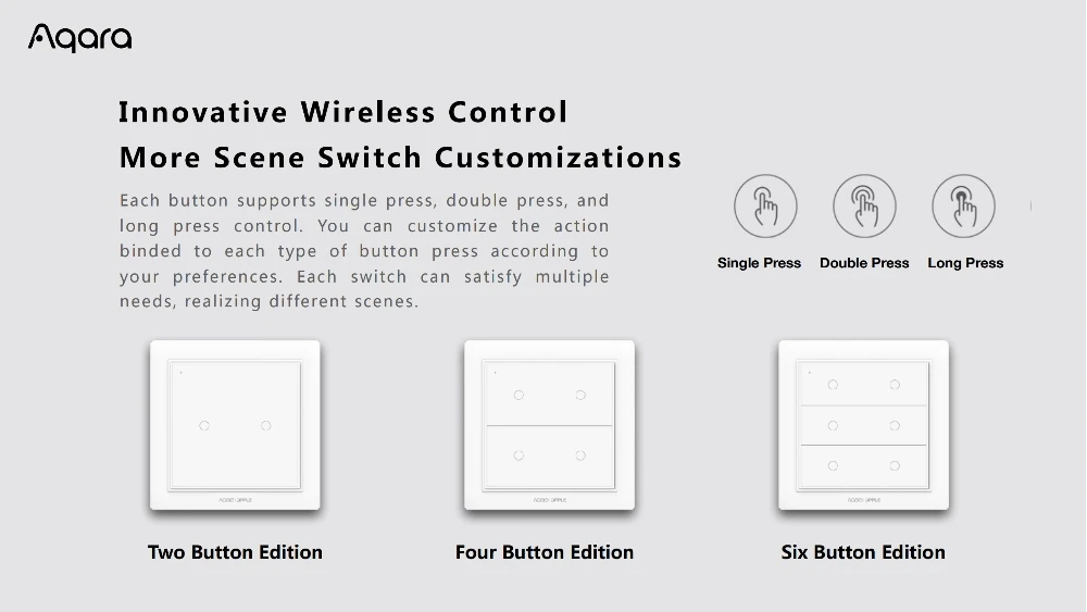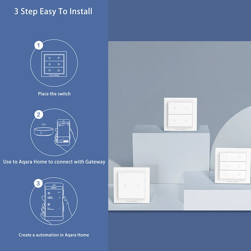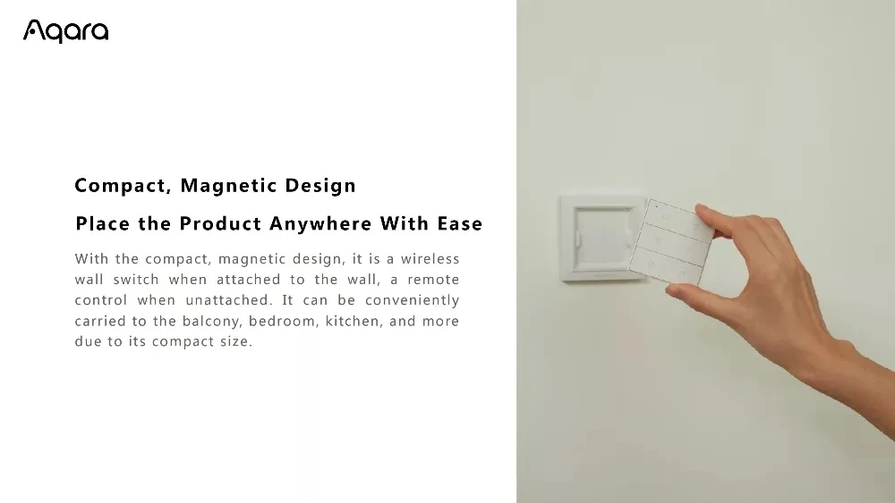 - Ready to use: no wiring, free to place, use adhesive tape to paste directly, or use screws to install on the wall Package include:1pcs Wireless Wall SwitchPlease Note: This switch has to work with Aqara Gateway to achieve smart remote control function.