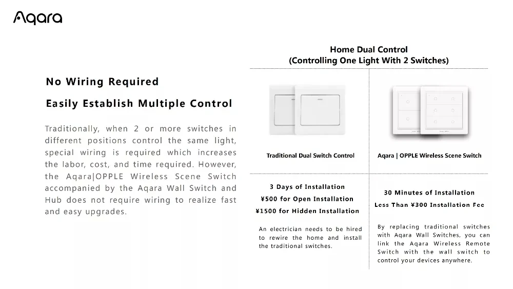 - Distributed network direct control with Aqara | Opple wireless scene switch.