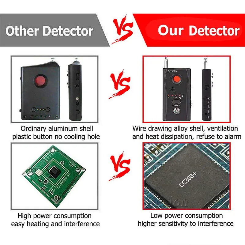 | Full Range Anti-Spy Bug Detector CC308 Gizli Kamera Search Mini Wireless Camera Hidden Signal GSM Device Finder Privacy Security |