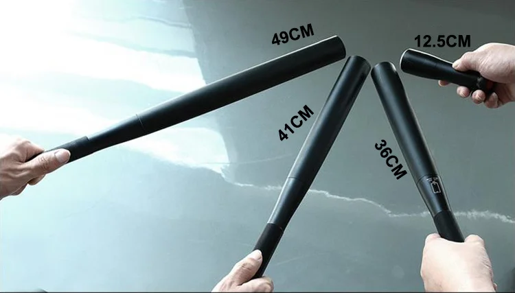 Product model: baseball bat flashlight Product material: aluminum alloy Product size: 49cm, 41cm, 36cm, 31cm, 12.5cm Lamp Bead Model: Glare XML-T6 Lamp Bead Focusing mode: no focus Light source lumens: 220-380LM Applicable battery: 41-49CM ,4* AA batteries / 31-36CM,3* AA batteries /36CM-18650Model,1* 18650 lithium battery. Product net weight: 49cm-400g, 41cm-310g, 36cm-280g, 31cm-220g, 12.5cm-115g Product role: outdoor self-defense, anti-riot self-defense, emergency security, self-driving essential.