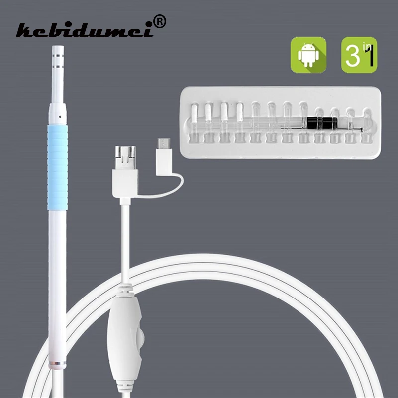 kebidumei 5.5mm Lens 2m Cable 3 IN 1 For Android IOS TYPE-C Endoscope Camera Ear Clean Spoon Earpick Otoscope Camera For Windows PC