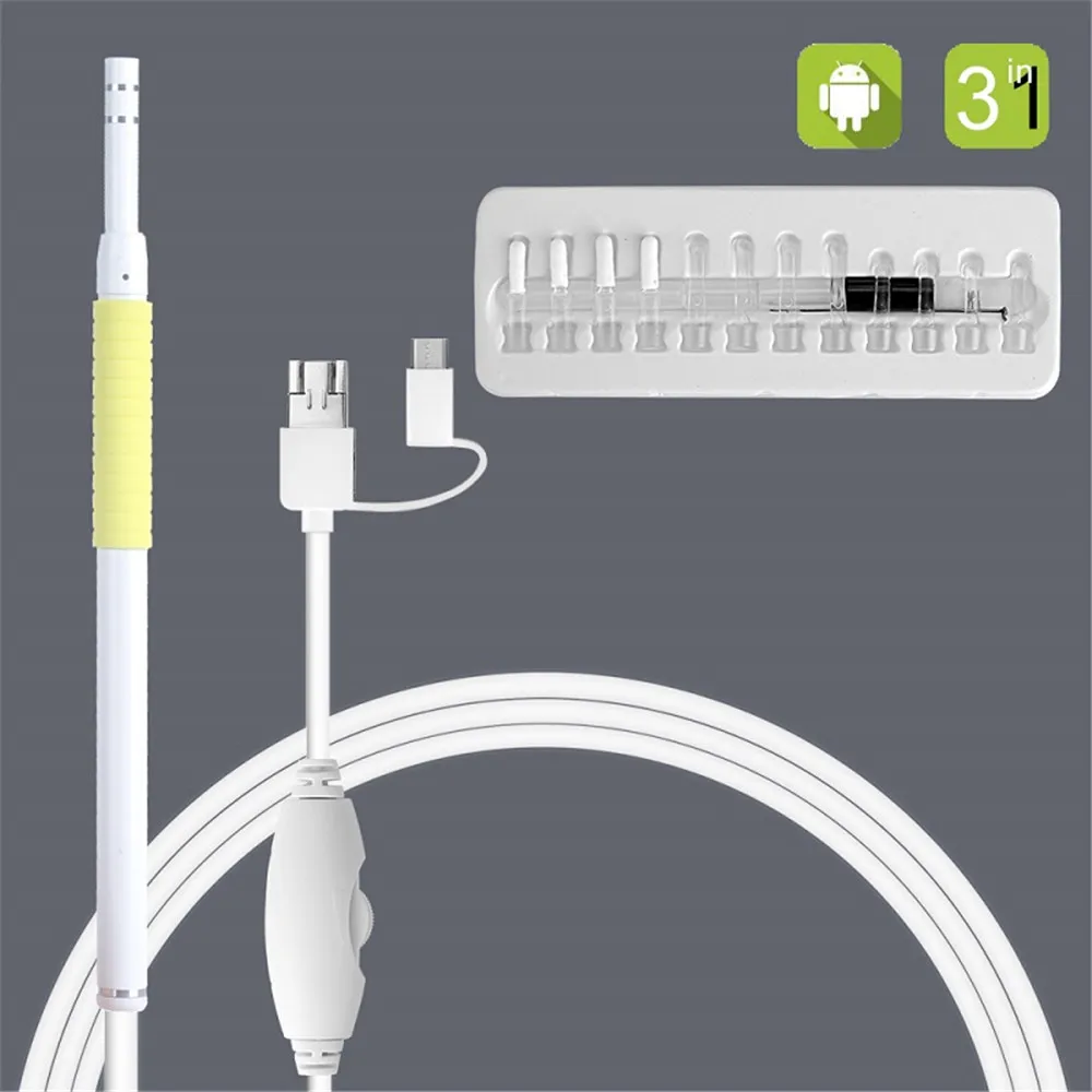 | 5.5mm Lens 2m Cable 3 IN 1 For Android IOS TYPE-C Endoscope Camera Ear Clean Spoon Earpick Otoscope Camera For Windows PC |