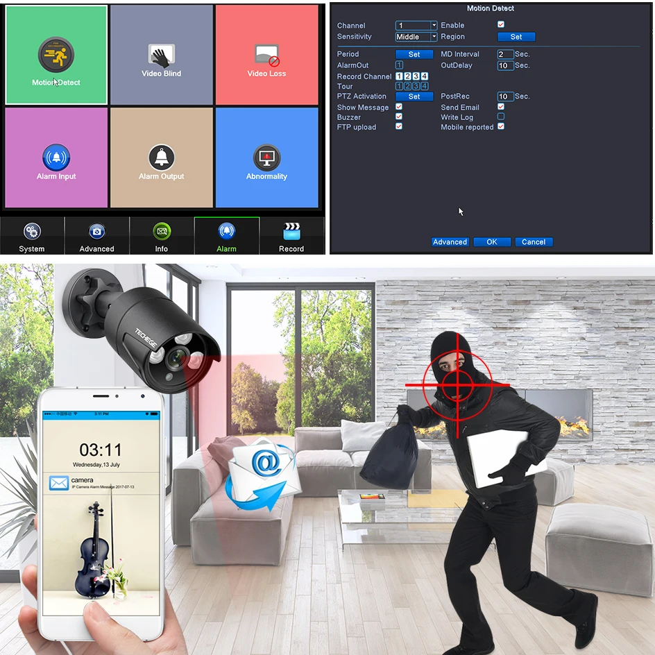 when motion is detected, the DVR can send email or start record to the hard diskwithout missing any important events.