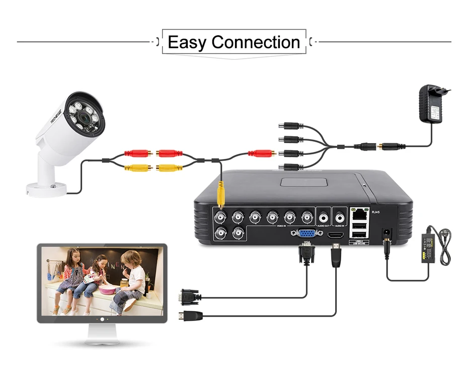 Package list:1* Mini 4/8 Channel DVR1* USB Mouse1* DC12V Power Adapter1* User ManualNO HDD or include HDD, depend on the model you choose.We provide EU/UKAU/US Plug ,We will send power adapter according to your country!How to Connect ?4CH