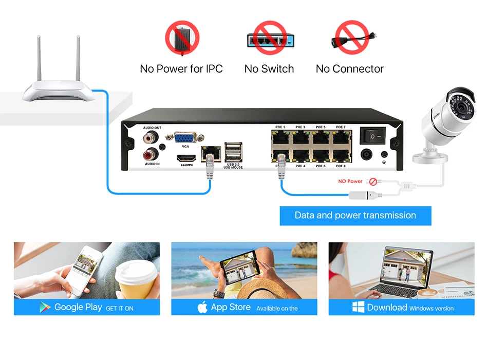 Live view or playback at anytime anywhere on smartphone,tablet,pc and hd monitor.