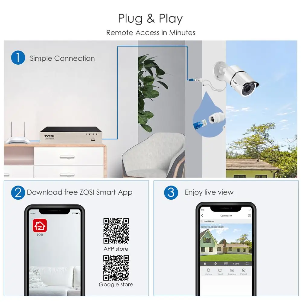ZOSI New 5MP POE Video Security System and (4) 2-Megapixel Outdoor Bullet 2MP 1080P IP Cameras with 120ft Night Vision